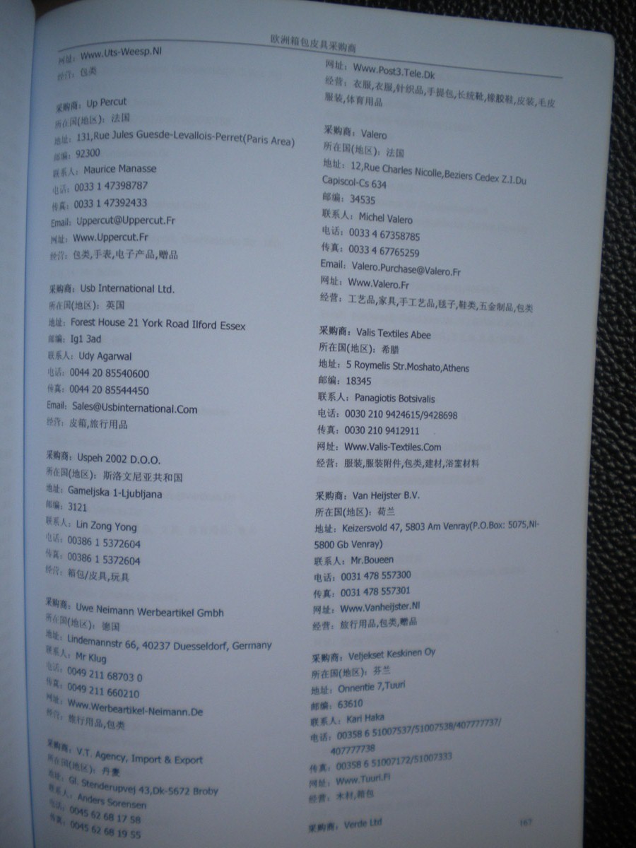 資料如何收集:在各大展會(huì)上,我們免費(fèi)向到會(huì)采購商提供他們需要的最新產(chǎn)品雜志和光盤,我們也同時(shí)向他們派發(fā)帶有我們網(wǎng)站LOGO的精美禮品,這些最新的中國供應(yīng)商的信息,對(duì)他們很有幫助,采購商會(huì)留下他們的名片,填寫詳細(xì)的產(chǎn)品求購信息,以期望得到更多的供應(yīng)商的信息。收集到這些第一手的原始外商資料后,我們客戶服務(wù)中心立刻將名片掃描作成圖片,將產(chǎn)品采購信息做成數(shù)據(jù)庫,將采購商資料按行業(yè)不同,匯編成冊(cè),出版發(fā)行《全球采購商黃頁》系列。