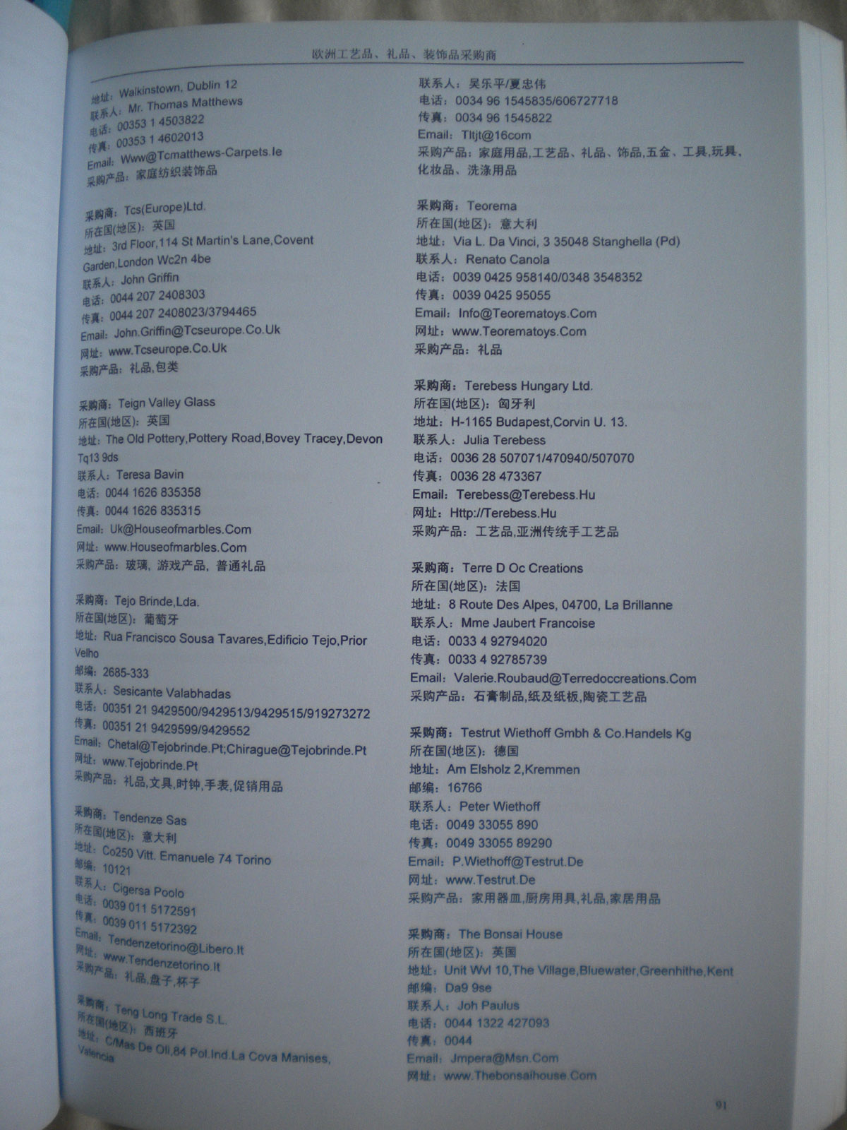 資料如何收集:在各大展會上,我們免費(fèi)向到會采購商提供他們需要的最新產(chǎn)品雜志和光盤,我們也同時(shí)向他們派發(fā)帶有我們網(wǎng)站LOGO的精美禮品,這些最新的中國供應(yīng)商的信息,對他們很有幫助,采購商會留下他們的名片,填寫詳細(xì)的產(chǎn)品求購信息,以期望得到更多的供應(yīng)商的信息。收集到這些第一手的原始外商資料后,我們客戶服務(wù)中心立刻將名片掃描作成圖片,將產(chǎn)品采購信息做成數(shù)據(jù)庫,將采購商資料按行業(yè)不同,匯編成冊,出版發(fā)行《全球采購商黃頁》系列。