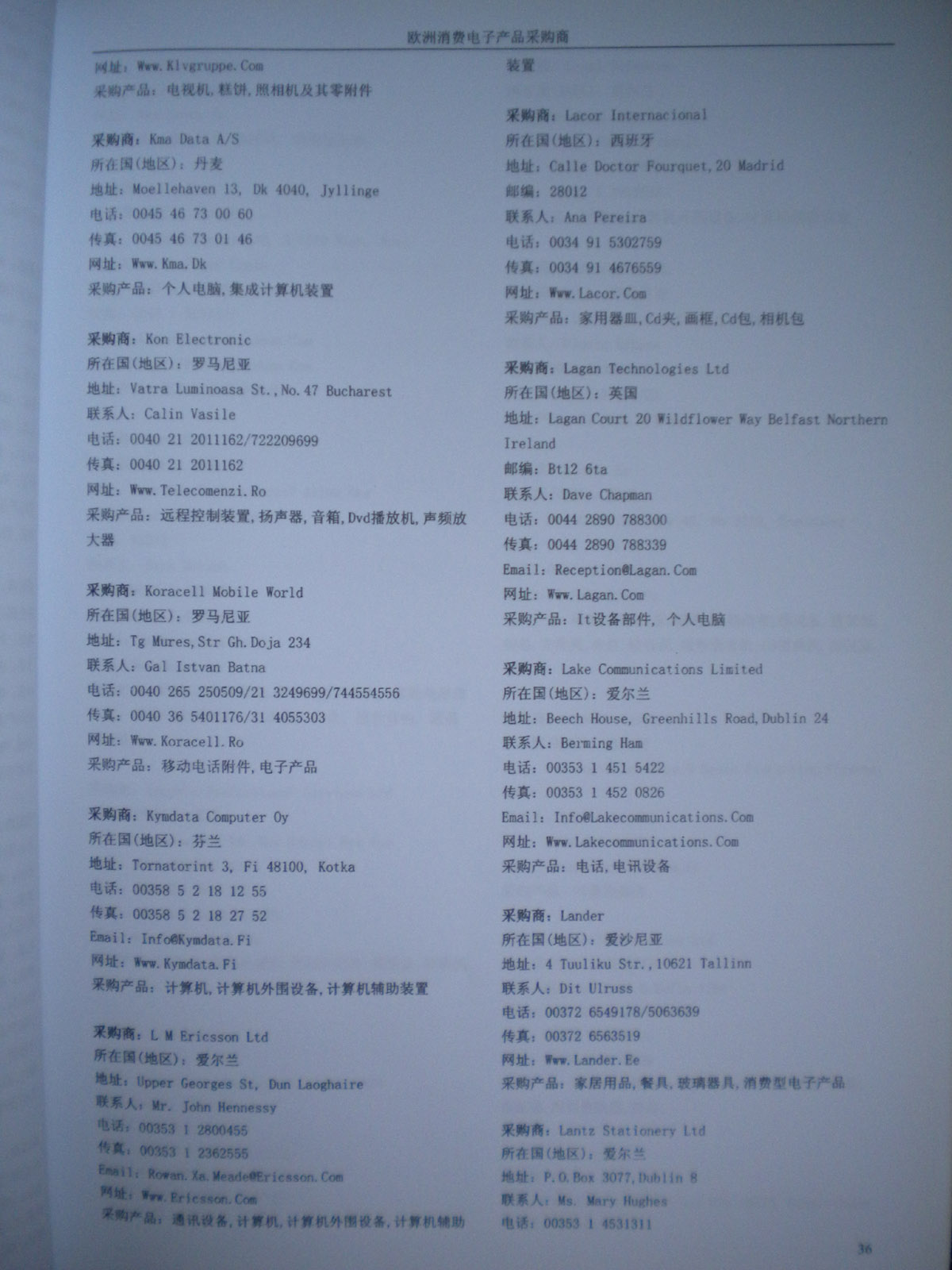 資料如何收集:在各大展會(huì)上,我們免費(fèi)向到會(huì)采購商提供他們需要的最新產(chǎn)品雜志和光盤,我們也同時(shí)向他們派發(fā)帶有我們網(wǎng)站LOGO的精美禮品,這些最新的中國供應(yīng)商的信息,對他們很有幫助,采購商會(huì)留下他們的名片,填寫詳細(xì)的產(chǎn)品求購信息,以期望得到更多的供應(yīng)商的信息。收集到這些第一手的原始外商資料后,我們客戶服務(wù)中心立刻將名片掃描作成圖片,將產(chǎn)品采購信息做成數(shù)據(jù)庫,將采購商資料按行業(yè)不同,匯編成冊,出版發(fā)行《全球采購商黃頁》系列。