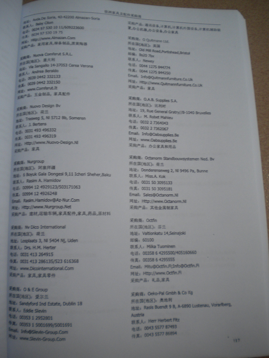 資料如何收集:在各大展會上,我們免費(fèi)向到會采購商提供他們需要的最新產(chǎn)品雜志和光盤,我們也同時向他們派發(fā)帶有我們網(wǎng)站LOGO的精美禮品,這些最新的中國供應(yīng)商的信息,對他們很有幫助,采購商會留下他們的名片,填寫詳細(xì)的產(chǎn)品求購信息,以期望得到更多的供應(yīng)商的信息。收集到這些第一手的原始外商資料后,我們客戶服務(wù)中心立刻將名片掃描作成圖片,將產(chǎn)品采購信息做成數(shù)據(jù)庫,將采購商資料按行業(yè)不同,匯編成冊,出版發(fā)行《全球采購商黃頁》系列。