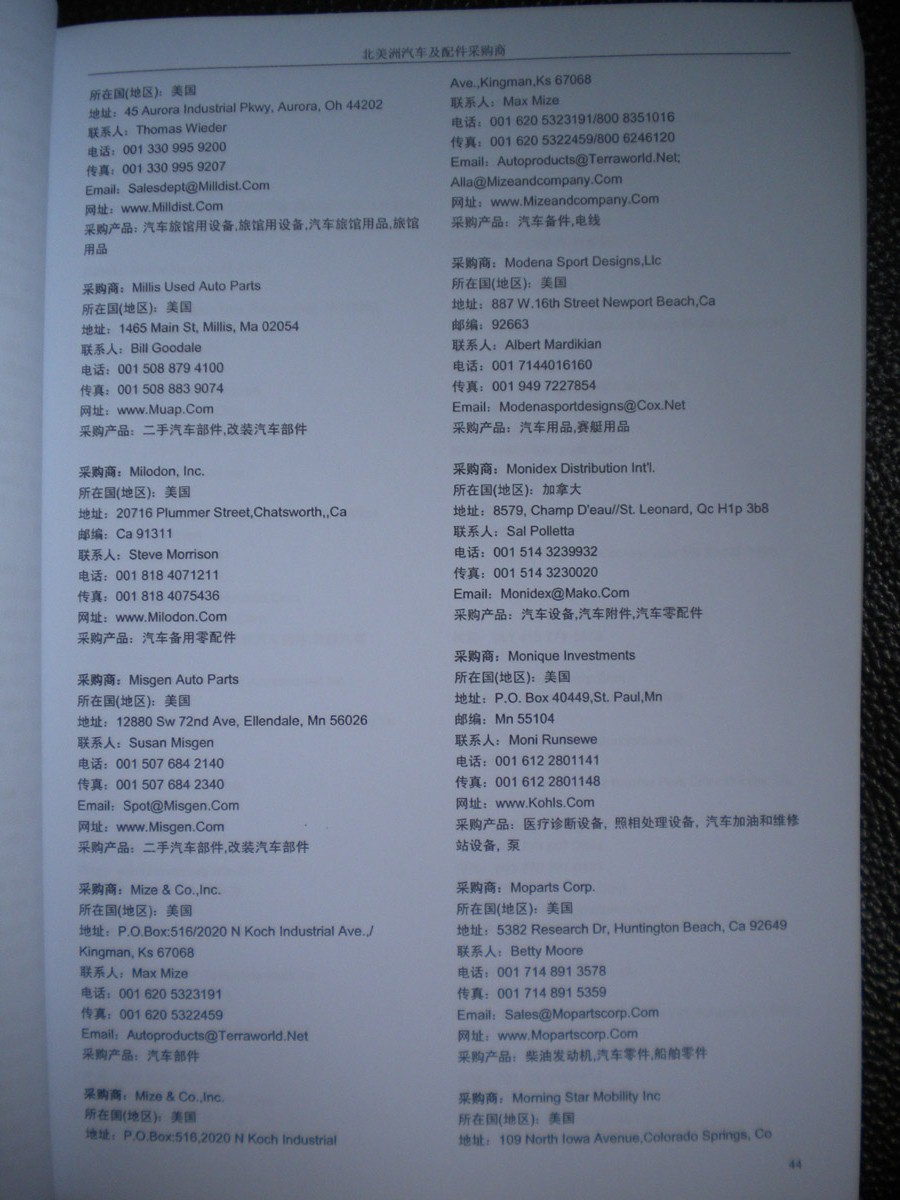 書刊簡介:《全球采商黃頁》系列叢書是由全球最活躍的專業(yè)買家及重要國際性展會的到會采購商名片信息匯編而成,包含三十多個行業(yè)分類,匯集了各類產(chǎn)品的買家信息。其中收錄的每家采購商信息均是我們通過與買家面對面的登記整理收集而成,采購意向明確,針對性強。為了確保信息的準(zhǔn)確性和時效性,我們定期進(jìn)行跟進(jìn)、回訪、補充及更新工作。每家采購商信息包括國別、公司名稱、聯(lián)系人、地址、電話、傳真、電郵、網(wǎng)址、采購產(chǎn)品等詳細(xì)內(nèi)容,每冊《黃頁》約有兩千家左右的采購商信息。在當(dāng)前國際出口形勢日趨嚴(yán)峻的環(huán)境下,如何降低成本開拓國際市場,是每個出口企業(yè)急需尋找的答案,我們相信通過我們10多年的外貿(mào)信息服務(wù)經(jīng)驗和最新的國際買家資源服務(wù),將會為您拓展全球市場提供最直接有效的幫助。專業(yè)對口的買家信息一定會幫助貴公司打開更廣闊的外貿(mào)市場!