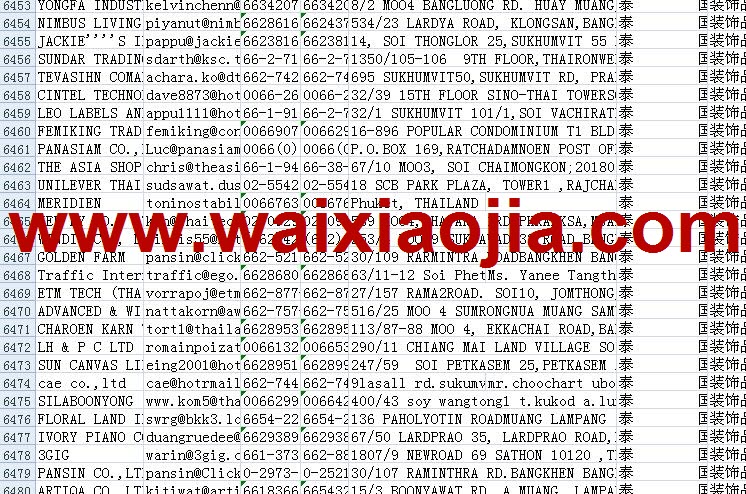 泰國(guó)采購(gòu)商名單數(shù)據(jù)為Excel格式,信息可任意修改、復(fù)制、打印、導(dǎo)出及導(dǎo)入到傳真、郵件群發(fā)等軟件中,無任何限制。