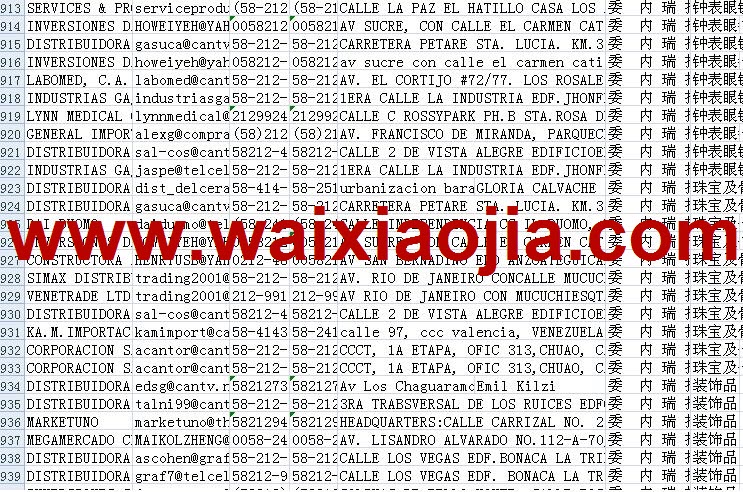 委內(nèi)瑞拉采購(gòu)商黃頁(yè)包括:企業(yè)名稱、電子郵箱、聯(lián)系電話、傳真、聯(lián)系地址、聯(lián)系人、郵編等信息。