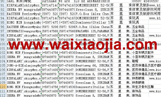 蘇里南采購商名單數(shù)據(jù)為Excel格式,信息可任意修改、復(fù)制、打印、導(dǎo)出及導(dǎo)入到傳真、郵件群發(fā)等軟件中,無任何限制。