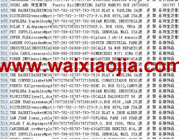 波多黎各采購商名單數(shù)據(jù)為Excel格式,信息可任意修改、復(fù)制、打印、導(dǎo)出及導(dǎo)入到傳真、郵件群發(fā)等軟件中,無任何限制。