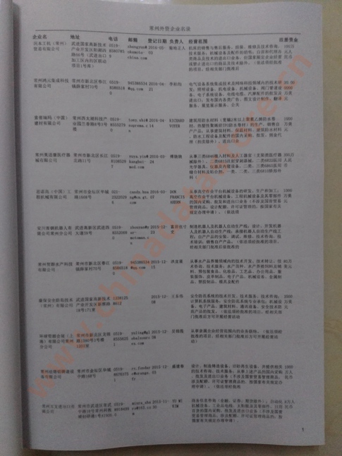 最新常州外資企業(yè)黃頁涵蓋了常州外商獨資企業(yè)、中外合資經(jīng)營企業(yè)以及港、澳、臺資企業(yè),包括常州臺資日資企業(yè)黃頁,常州外企黃頁具體內(nèi)容包括:企業(yè)名稱、地址、電話、傳真、郵箱、經(jīng)營范圍、注冊資金等信息;常州外資企業(yè)黃頁里面的企業(yè)都一些中外合資的大企業(yè),這些公司經(jīng)濟實力都比較雄厚,出口產(chǎn)品也比較多,業(yè)務范圍都比較廣,跟他們開展業(yè)務往來都比較容易;有了常州臺企日企黃頁開展業(yè)務也有了針對性,也省去了盲目去尋找客戶名單而浪費的時間了,工作效率也會有很大的提高.歡迎需要的客戶及時聯(lián)系我們!