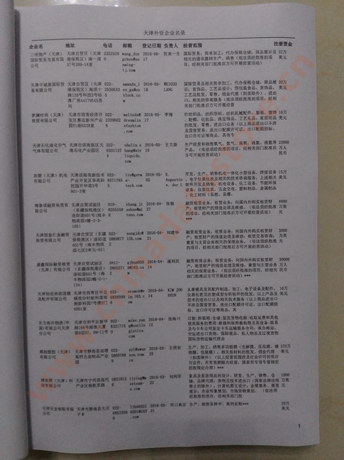 2021版最新天津企業(yè)黃頁包括《天津制造企業(yè)黃頁》、《天津貿(mào)易企業(yè)黃頁》、《天津民營企業(yè)黃頁》、《天津外資企業(yè)黃頁》、《天津外貿(mào)企業(yè)黃頁》共五冊,現(xiàn)優(yōu)惠價(jià):280元/冊。每冊內(nèi)容包括:單位名稱、地址、郵編、電話、傳真、郵箱、經(jīng)營范圍等;天津企業(yè)黃頁涵蓋了近幾年來最新成立的、有一定規(guī)模的企業(yè),具有非常高的營銷價(jià)值。有了這套黃頁開展業(yè)務(wù)也有了針對性,也省去了盲目去尋找客戶名單而浪費(fèi)的時(shí)間了,工作效率也會有很大的提高。歡迎需要天津企業(yè)黃頁的朋友及時(shí)聯(lián)系我們!