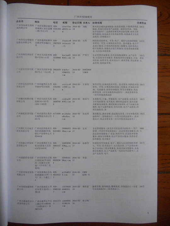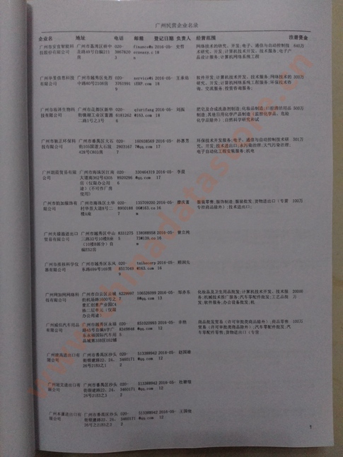 2021版最新廣州企業(yè)黃頁(yè)包括《廣州制造企業(yè)黃頁(yè)》、《廣州貿(mào)易企業(yè)黃頁(yè)》、《廣州民營(yíng)企業(yè)黃頁(yè)》、《廣州外資企業(yè)黃頁(yè)》、《廣州外貿(mào)企業(yè)黃頁(yè)》共五冊(cè),現(xiàn)優(yōu)惠價(jià):280元/冊(cè)。每?jī)?cè)內(nèi)容包括:?jiǎn)挝幻Q(chēng)、地址、郵編、電話(huà)、傳真、郵箱、經(jīng)營(yíng)范圍等;廣州企業(yè)黃頁(yè)涵蓋了近幾年來(lái)最新成立的、有一定規(guī)模的企業(yè),具有非常高的營(yíng)銷(xiāo)價(jià)值。有了這套黃頁(yè)開(kāi)展業(yè)務(wù)也有了針對(duì)性,也省去了盲目去尋找客戶(hù)名單而浪費(fèi)的時(shí)間了,工作效率也會(huì)有很大的提高。歡迎需要廣州企業(yè)黃頁(yè)的朋友及時(shí)聯(lián)系我們!
