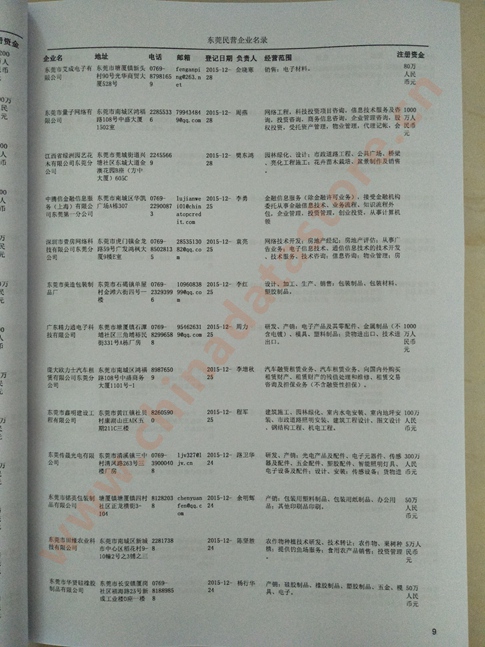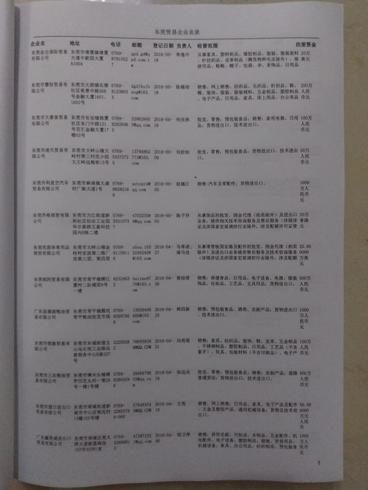 2021版最新東莞企業(yè)黃頁包括《東莞制造企業(yè)黃頁》、《東莞貿(mào)易企業(yè)黃頁》、《東莞民營企業(yè)黃頁》、《東莞外資企業(yè)黃頁》、《東莞外貿(mào)企業(yè)黃頁》共五冊,現(xiàn)優(yōu)惠價:280元/冊。每冊內(nèi)容包括:單位名稱、地址、郵編、電話、傳真、郵箱、經(jīng)營范圍等;東莞企業(yè)黃頁涵蓋了近幾年來最新成立的、有一定規(guī)模的企業(yè),具有非常高的營銷價值。有了這套黃頁開展業(yè)務(wù)也有了針對性,也省去了盲目去尋找客戶名單而浪費的時間了,工作效率也會有很大的提高。歡迎需要東莞企業(yè)黃頁的朋友及時聯(lián)系我們!