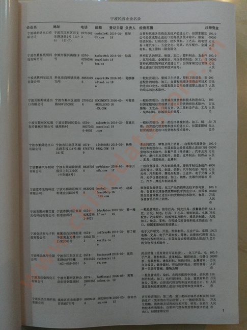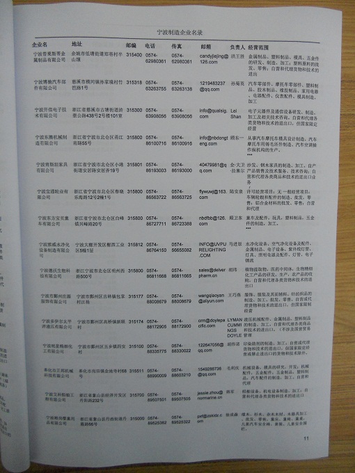 2021版最新寧波企業(yè)黃頁包括《寧波制造企業(yè)黃頁》、《寧波貿(mào)易企業(yè)黃頁》、《寧波民營(yíng)企業(yè)黃頁》、《寧波外資企業(yè)黃頁》、《寧波外貿(mào)企業(yè)黃頁》共五冊(cè),現(xiàn)優(yōu)惠價(jià):280元/冊(cè)。每?jī)?cè)內(nèi)容包括:?jiǎn)挝幻Q、地址、郵編、電話、傳真、郵箱、經(jīng)營(yíng)范圍等;寧波企業(yè)黃頁涵蓋了近幾年來最新成立的、有一定規(guī)模的企業(yè),具有非常高的營(yíng)銷價(jià)值。有了這套黃頁開展業(yè)務(wù)也有了針對(duì)性,也省去了盲目去尋找客戶名單而浪費(fèi)的時(shí)間了,工作效率也會(huì)有很大的提高。歡迎需要寧波企業(yè)黃頁的朋友及時(shí)聯(lián)系我們!