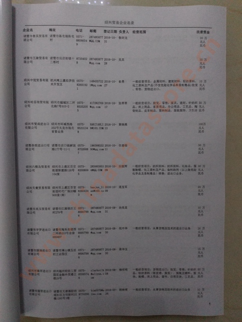 2021版最新紹興企業(yè)黃頁包括《紹興制造企業(yè)黃頁》、《紹興貿易企業(yè)黃頁》、《紹興民營企業(yè)黃頁》、《紹興外資企業(yè)黃頁》、《紹興外貿企業(yè)黃頁》共五冊,現(xiàn)優(yōu)惠價:280元/冊。每冊內容包括:單位名稱、地址、郵編、電話、傳真、郵箱、經營范圍等;紹興企業(yè)黃頁涵蓋了近幾年來最新成立的、有一定規(guī)模的企業(yè),具有非常高的營銷價值。有了這套黃頁開展業(yè)務也有了針對性,也省去了盲目去尋找客戶名單而浪費的時間了,工作效率也會有很大的提高。歡迎需要紹興企業(yè)黃頁的朋友及時聯(lián)系我們!