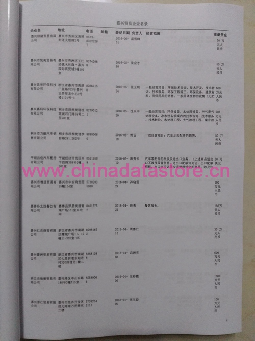 2021版最新嘉興企業(yè)黃頁(yè)包括《嘉興制造企業(yè)黃頁(yè)》、《嘉興貿(mào)易企業(yè)黃頁(yè)》、《嘉興民營(yíng)企業(yè)黃頁(yè)》、《嘉興外資企業(yè)黃頁(yè)》、《嘉興外貿(mào)企業(yè)黃頁(yè)》共五冊(cè),現(xiàn)優(yōu)惠價(jià):280元/冊(cè)。每?jī)?cè)內(nèi)容包括:?jiǎn)挝幻Q、地址、郵編、電話、傳真、郵箱、經(jīng)營(yíng)范圍等;嘉興企業(yè)黃頁(yè)涵蓋了近幾年來(lái)最新成立的、有一定規(guī)模的企業(yè),具有非常高的營(yíng)銷價(jià)值。有了這套黃頁(yè)開展業(yè)務(wù)也有了針對(duì)性,也省去了盲目去尋找客戶名單而浪費(fèi)的時(shí)間了,工作效率也會(huì)有很大的提高。歡迎需要嘉興企業(yè)黃頁(yè)的朋友及時(shí)聯(lián)系我們!
