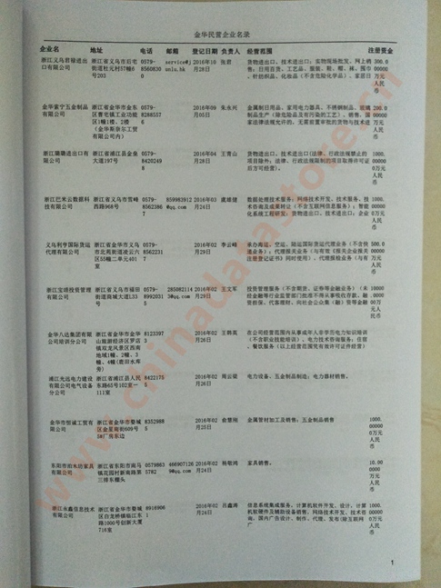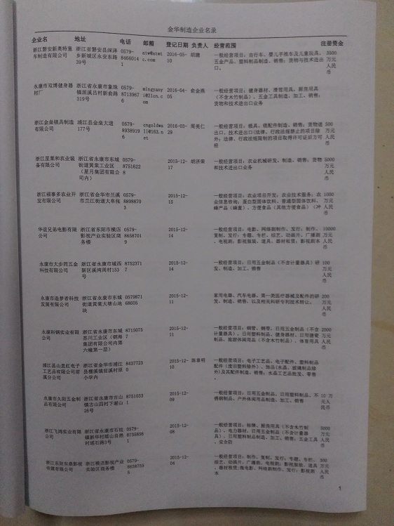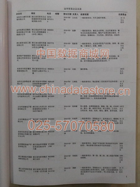 2021版最新金華企業(yè)黃頁(yè)包括《金華制造企業(yè)黃頁(yè)》、《金華貿(mào)易企業(yè)黃頁(yè)》、《金華民營(yíng)企業(yè)黃頁(yè)》、《金華外資企業(yè)黃頁(yè)》、《金華外貿(mào)企業(yè)黃頁(yè)》共五冊(cè),現(xiàn)優(yōu)惠價(jià):280元/冊(cè)。每?jī)?cè)內(nèi)容包括:?jiǎn)挝幻Q、地址、郵編、電話、傳真、郵箱、經(jīng)營(yíng)范圍等;金華企業(yè)黃頁(yè)涵蓋了近幾年來(lái)最新成立的、有一定規(guī)模的企業(yè),具有非常高的營(yíng)銷價(jià)值。有了這套黃頁(yè)開展業(yè)務(wù)也有了針對(duì)性,也省去了盲目去尋找客戶名單而浪費(fèi)的時(shí)間了,工作效率也會(huì)有很大的提高。歡迎需要金華企業(yè)黃頁(yè)的朋友及時(shí)聯(lián)系我們!