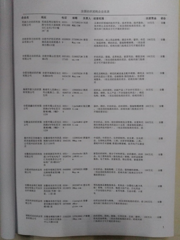 2024年新版中國紡織采購企業(yè)黃頁,收錄了全國各地經(jīng)營范圍涉及紡織產(chǎn)品的貿(mào)易企業(yè),這些都是頗具實力的紡織產(chǎn)品的中國采購商。黃頁內(nèi)容包含:企業(yè)名稱、地址、電話、傳真、郵箱、經(jīng)營范圍、省份、注冊資金等信息。該套黃頁包含一個黃頁光碟加一冊紙質(zhì)書刊,全國價格:1500元,省/直轄市價格:400元,城市價格:200元,共收錄了全國各地大概34571(統(tǒng)計日期:2018.1)家紡織產(chǎn)品采購企業(yè)。黃頁光碟中是EXCEL格式,信息可任意修改、復制、打印、導出及導入到傳真、郵件群發(fā)等軟件中,無任何限制。
