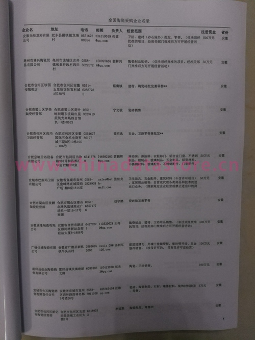 2024年新版中國(guó)陶瓷采購(gòu)企業(yè)黃頁(yè),收錄了全國(guó)各地經(jīng)營(yíng)范圍涉及陶瓷產(chǎn)品的貿(mào)易企業(yè),這些都是頗具實(shí)力的陶瓷產(chǎn)品的中國(guó)采購(gòu)商。黃頁(yè)內(nèi)容包含:企業(yè)名稱(chēng)、地址、電話(huà)、傳真、郵箱、經(jīng)營(yíng)范圍、省份、注冊(cè)資金等信息。該套黃頁(yè)包含一個(gè)黃頁(yè)光碟加一冊(cè)紙質(zhì)書(shū)刊,全國(guó)價(jià)格:1500元,省/直轄市價(jià)格:400元,城市價(jià)格:200元,共收錄了全國(guó)各地大概10500(統(tǒng)計(jì)日期:2018.1)家陶瓷產(chǎn)品采購(gòu)企業(yè)。黃頁(yè)光碟中是EXCEL格式,信息可任意修改、復(fù)制、打印、導(dǎo)出及導(dǎo)入到傳真、郵件群發(fā)等軟件中,無(wú)任何限制。
