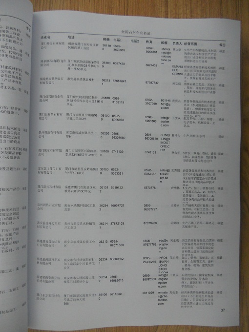 某省或直轄市 如上海、浙江石材企業(yè)名單  80% - 90% 600元 附贈(zèng)一冊(cè)石材紙質(zhì)印刷品