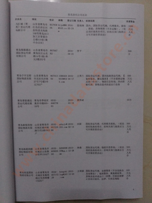 青島貨運(yùn)代理公司名單數(shù)據(jù)為Excel格式,信息可任意修改、復(fù)制、打印、導(dǎo)出及導(dǎo)入到傳真、郵件群發(fā)等軟件中,無(wú)任何限制。