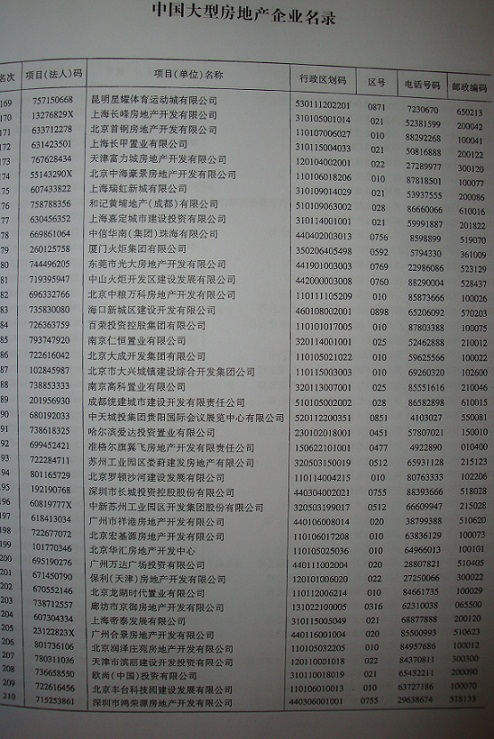 中國(guó)大型房地產(chǎn)企業(yè)名錄