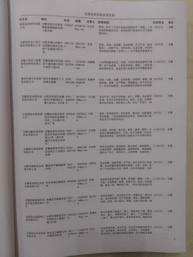 農(nóng)藥化肥生產(chǎn)貿(mào)易企業(yè)精準名錄