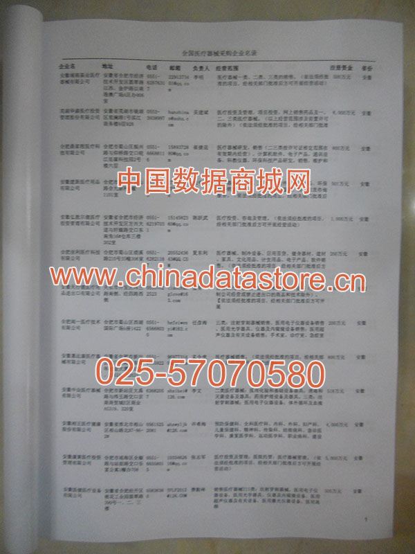 2024年新版中國(guó)醫(yī)療器械采購(gòu)企業(yè)黃頁,收錄了全國(guó)各地經(jīng)營(yíng)范圍涉及醫(yī)療器械產(chǎn)品的貿(mào)易企業(yè),這些都是頗具實(shí)力的醫(yī)療器械產(chǎn)品的中國(guó)采購(gòu)商。黃頁內(nèi)容包含:企業(yè)名稱、地址、電話、傳真、郵箱、經(jīng)營(yíng)范圍、省份、注冊(cè)資金等信息。該套黃頁包含一個(gè)黃頁光碟加一冊(cè)紙質(zhì)書刊,全國(guó)價(jià)格:1200元,省/直轄市價(jià)格是:400元,城市價(jià)格是:200元,共收錄了全國(guó)各地大概36680家(更新日期:2017.1)醫(yī)療器械產(chǎn)品采購(gòu)企業(yè)。黃頁光碟中是EXCEL格式,信息可任意修改、復(fù)制、打印、導(dǎo)出及導(dǎo)入到傳真、郵件群發(fā)等軟件中,無任何限制。