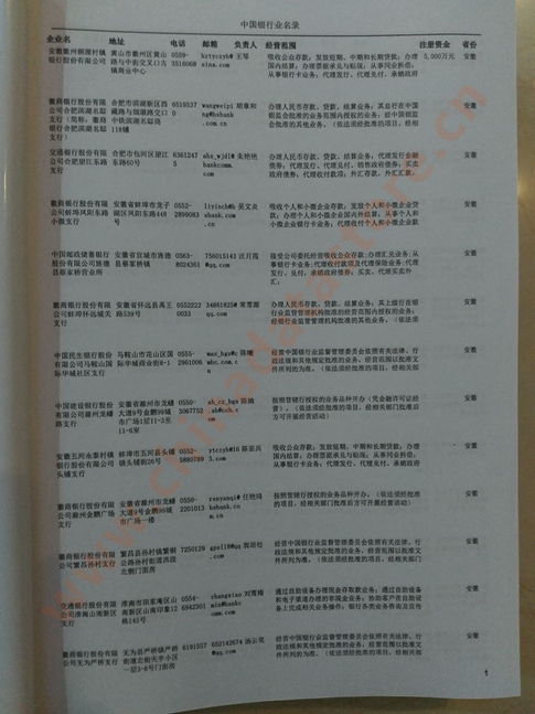 某省或直轄市 如上海、浙江銀行業(yè)名單  80% - 90% 600元 附贈一冊銀行業(yè)紙質(zhì)印刷品