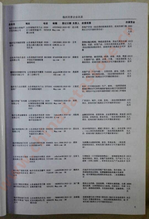 2021版最新臨沂企業(yè)黃頁包括《臨沂制造企業(yè)黃頁》、《臨沂民營企業(yè)黃頁》,現(xiàn)優(yōu)惠價:280元/冊。每冊內(nèi)容包括:單位名稱、地址、郵編、電話、傳真、郵箱、經(jīng)營范圍等;臨沂企業(yè)黃頁涵蓋了近幾年來最新成立的、有一定規(guī)模的企業(yè),具有非常高的營銷價值。有了這套黃頁開展業(yè)務(wù)也有了針對性,也省去了盲目去尋找客戶名單而浪費(fèi)的時間了,工作效率也會有很大的提高。歡迎需要臨沂企業(yè)黃頁的朋友及時聯(lián)系我們!