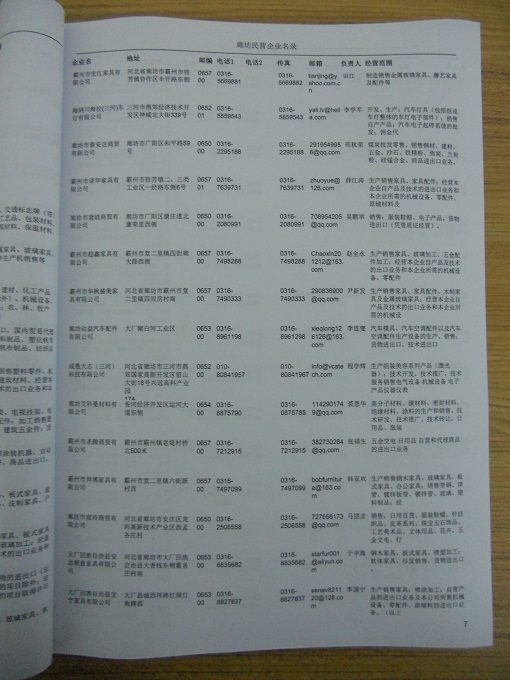 2021版最新廊坊企業(yè)黃頁包括《廊坊制造企業(yè)黃頁》、《廊坊民營企業(yè)黃頁》,現(xiàn)優(yōu)惠價:280元/冊。每冊內(nèi)容包括:單位名稱、地址、郵編、電話、傳真、郵箱、經(jīng)營范圍等;廊坊企業(yè)黃頁涵蓋了近幾年來最新成立的、有一定規(guī)模的企業(yè),具有非常高的營銷價值。有了這套黃頁開展業(yè)務(wù)也有了針對性,也省去了盲目去尋找客戶名單而浪費(fèi)的時間了,工作效率也會有很大的提高。歡迎需要廊坊企業(yè)黃頁的朋友及時聯(lián)系我們!