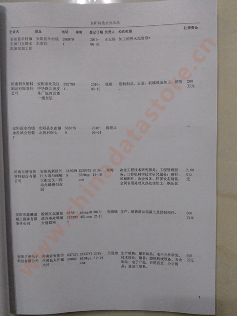 2021版最新安陽(yáng)企業(yè)黃頁(yè)包括《安陽(yáng)制造企業(yè)黃頁(yè)》、《安陽(yáng)民營(yíng)企業(yè)黃頁(yè)》,現(xiàn)優(yōu)惠價(jià):280元/冊(cè)。每?jī)?cè)內(nèi)容包括:?jiǎn)挝幻Q(chēng)、地址、郵編、電話(huà)、傳真、郵箱、經(jīng)營(yíng)范圍等;安陽(yáng)企業(yè)黃頁(yè)涵蓋了近幾年來(lái)最新成立的、有一定規(guī)模的企業(yè),具有非常高的營(yíng)銷(xiāo)價(jià)值。有了這套黃頁(yè)開(kāi)展業(yè)務(wù)也有了針對(duì)性,也省去了盲目去尋找客戶(hù)名單而浪費(fèi)的時(shí)間了,工作效率也會(huì)有很大的提高。歡迎需要安陽(yáng)企業(yè)黃頁(yè)的朋友及時(shí)聯(lián)系我們!