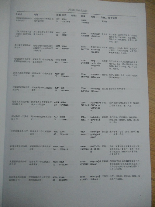 2021版最新周口企業(yè)黃頁包括《周口制造企業(yè)黃頁》、《周口民營企業(yè)黃頁》,現(xiàn)優(yōu)惠價:280元/冊。每冊內容包括:單位名稱、地址、郵編、電話、傳真、郵箱、經(jīng)營范圍等;周口企業(yè)黃頁涵蓋了近幾年來最新成立的、有一定規(guī)模的企業(yè),具有非常高的營銷價值。有了這套黃頁開展業(yè)務也有了針對性,也省去了盲目去尋找客戶名單而浪費的時間了,工作效率也會有很大的提高。歡迎需要周口企業(yè)黃頁的朋友及時聯(lián)系我們!