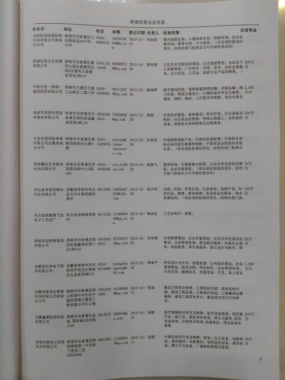 2021版最新淮南企業(yè)黃頁包括《淮南制造企業(yè)黃頁》、《淮南民營企業(yè)黃頁》,現(xiàn)優(yōu)惠價:280元/冊。每冊內(nèi)容包括:單位名稱、地址、郵編、電話、傳真、郵箱、經(jīng)營范圍等;淮南企業(yè)黃頁涵蓋了近幾年來最新成立的、有一定規(guī)模的企業(yè),具有非常高的營銷價值。有了這套黃頁開展業(yè)務也有了針對性,也省去了盲目去尋找客戶名單而浪費的時間了,工作效率也會有很大的提高。歡迎需要淮南企業(yè)黃頁的朋友及時聯(lián)系我們!