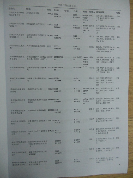 壓鑄企業(yè)黃頁收錄了最新的壓鑄企業(yè)名單,具有極高的營銷價(jià)值,實(shí)實(shí)在在提高銷售業(yè)績