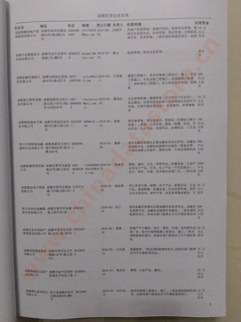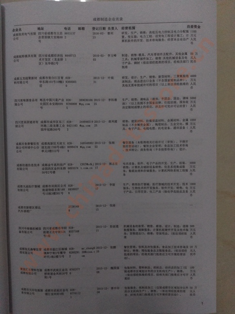 2021版最新成都企業(yè)黃頁(yè)包括《成都制造企業(yè)黃頁(yè)》、《成都民營(yíng)企業(yè)黃頁(yè)》,現(xiàn)優(yōu)惠價(jià):280元/冊(cè)。每?jī)?cè)內(nèi)容包括:?jiǎn)挝幻Q、地址、郵編、電話、傳真、郵箱、經(jīng)營(yíng)范圍等;成都企業(yè)黃頁(yè)涵蓋了近幾年來(lái)最新成立的、有一定規(guī)模的企業(yè),具有非常高的營(yíng)銷價(jià)值。有了這套黃頁(yè)開展業(yè)務(wù)也有了針對(duì)性,也省去了盲目去尋找客戶名單而浪費(fèi)的時(shí)間了,工作效率也會(huì)有很大的提高。歡迎需要成都企業(yè)黃頁(yè)的朋友及時(shí)聯(lián)系我們!