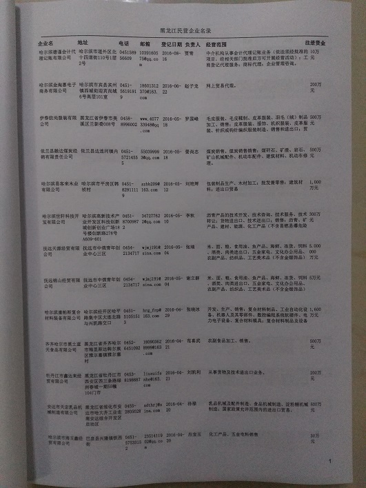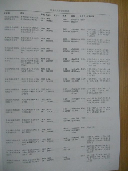 2021版最新黑龍江企業(yè)黃頁包括《黑龍江制造企業(yè)黃頁》、《黑龍江貿易企業(yè)黃頁》、《黑龍江民營企業(yè)黃頁》共三冊,優(yōu)惠價:280元/冊。每冊內容包括:單位名稱、地址、郵編、電話、傳真、郵箱、經營范圍等;黑龍江企業(yè)黃頁涵蓋了近幾年來最新成立的、有一定規(guī)模的企業(yè),具有非常高的營銷價值。有了這套黃頁開展業(yè)務也有了針對性,也省去了盲目去尋找客戶名單而浪費的時間了,工作效率也會有很大的提高。歡迎需要黑龍江企業(yè)黃頁的朋友及時聯(lián)系我們!