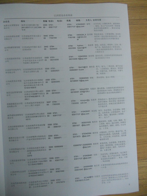 2021版最新江西企業(yè)黃頁包括《江西制造企業(yè)黃頁》、《江西貿(mào)易企業(yè)黃頁》、《江西民營企業(yè)黃頁》共三冊,優(yōu)惠價:280元/冊。每冊內(nèi)容包括:單位名稱、地址、郵編、電話、傳真、郵箱、經(jīng)營范圍等;江西企業(yè)黃頁涵蓋了近幾年來最新成立的、有一定規(guī)模的企業(yè),具有非常高的營銷價值。有了這套黃頁開展業(yè)務也有了針對性,也省去了盲目去尋找客戶名單而浪費的時間了,工作效率也會有很大的提高。歡迎需要江西企業(yè)黃頁的朋友及時聯(lián)系我們!