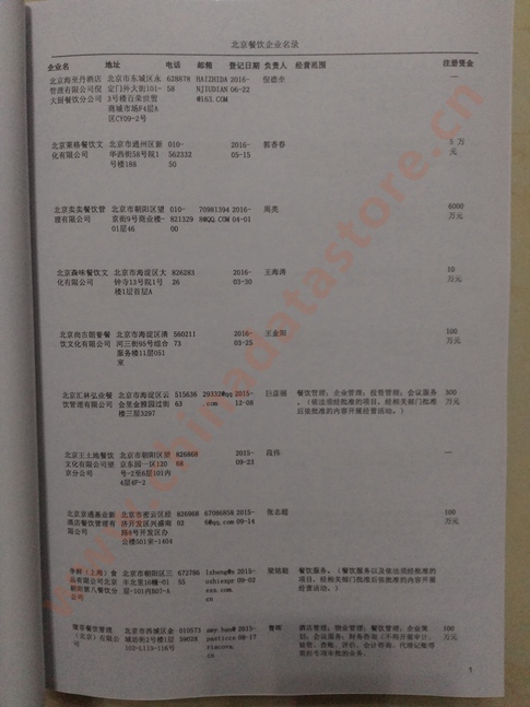 北京餐飲企業(yè)黃頁(yè)收錄了最新的北京餐飲企業(yè)名單,具有極高的營(yíng)銷價(jià)值,實(shí)實(shí)在在提高銷售業(yè)績(jī)
