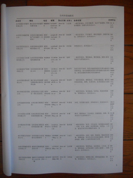臺州外貿(mào)企業(yè)黃頁包括:外貿(mào)企業(yè)名稱、地址、電話、傳真、郵箱、經(jīng)營范圍、注冊資金等信息。