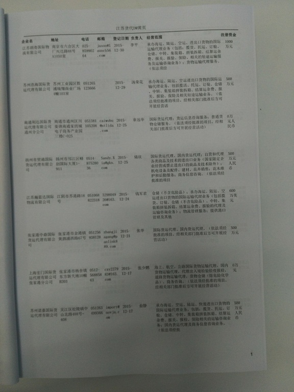 江蘇貨運公司黃頁包括:企業(yè)名稱、負責人聯(lián)系方式、企業(yè)電話、傳真、Email、經營范圍、地址、郵編等信息。