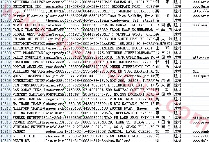 建材行業(yè)采購商名單數(shù)據(jù)為Excel格式,信息可任意修改、復制、打印、導出及導入到傳真、郵件群發(fā)等軟件中,無任何限制。