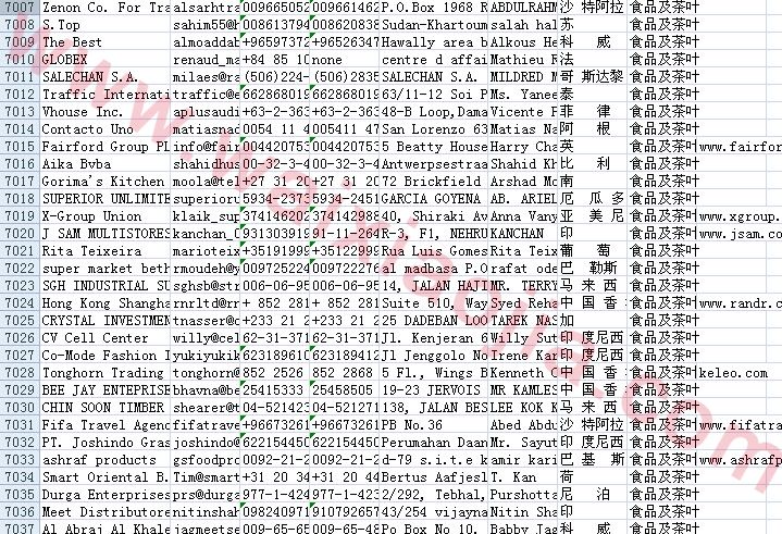 食品飲料茶葉采購(gòu)商名單數(shù)據(jù)為Excel格式,信息可任意修改、復(fù)制、打印、導(dǎo)出及導(dǎo)入到傳真、郵件群發(fā)等軟件中,無(wú)任何限制。