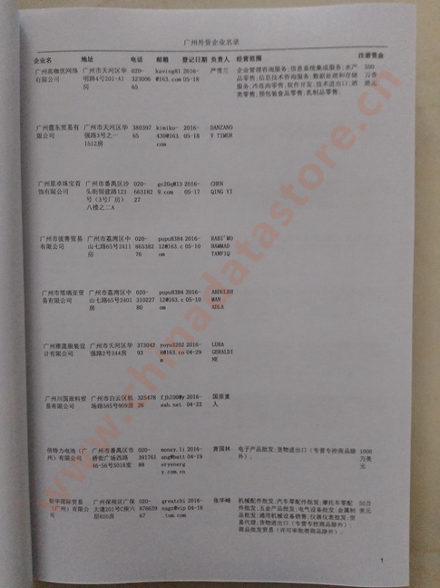 | 某個(gè)國(guó)別或地區(qū)投資企業(yè)黃頁(yè) | 如廣州日企黃頁(yè)、廣州臺(tái)企黃頁(yè) | 80% | RMB:300元 |