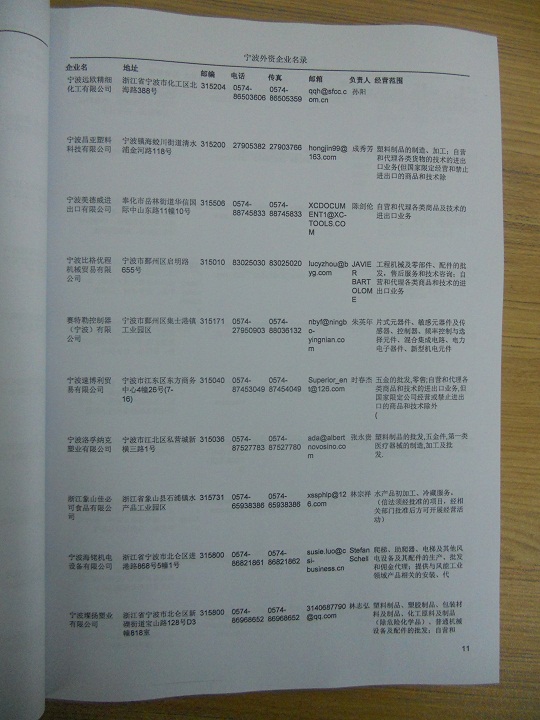 | 寧波某個(gè)行業(yè)外資企業(yè)黃頁 | 如機(jī)械、機(jī)電、化工等行業(yè) | 80% | RMB:300元 |