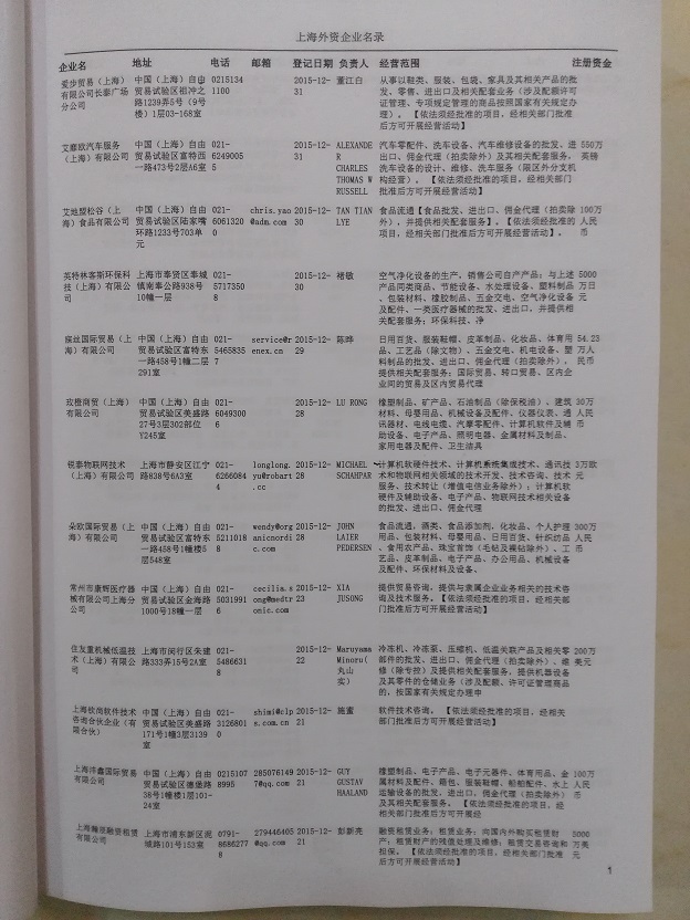 最新上海外資企業(yè)黃頁涵蓋了上海外商獨(dú)資企業(yè)、中外合資經(jīng)營企業(yè)以及港、澳、臺資企業(yè),包括上海日企臺企黃頁等,具體內(nèi)容包括:企業(yè)名稱、地址、電話、傳真、郵箱、經(jīng)營范圍、注冊資金等信息;上海外資企業(yè)名單里面的企業(yè)都一些中外合資的大企業(yè),這些公司經(jīng)濟(jì)實(shí)力都比較雄厚,出口產(chǎn)品也比較多,業(yè)務(wù)范圍都比較廣,跟他們開展業(yè)務(wù)往來都比較容易;有了上海日資臺資等企業(yè)黃頁開展業(yè)務(wù)也有了針對性,也省去了盲目去尋找客戶名單而浪費(fèi)的時(shí)間了,工作效率也會有很大的提高.歡迎需要客戶及時(shí)聯(lián)系我們!