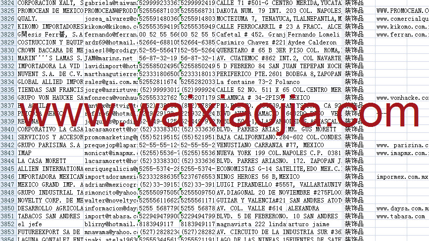 墨西哥采購商公司黃頁共3900條記錄,價格:300元